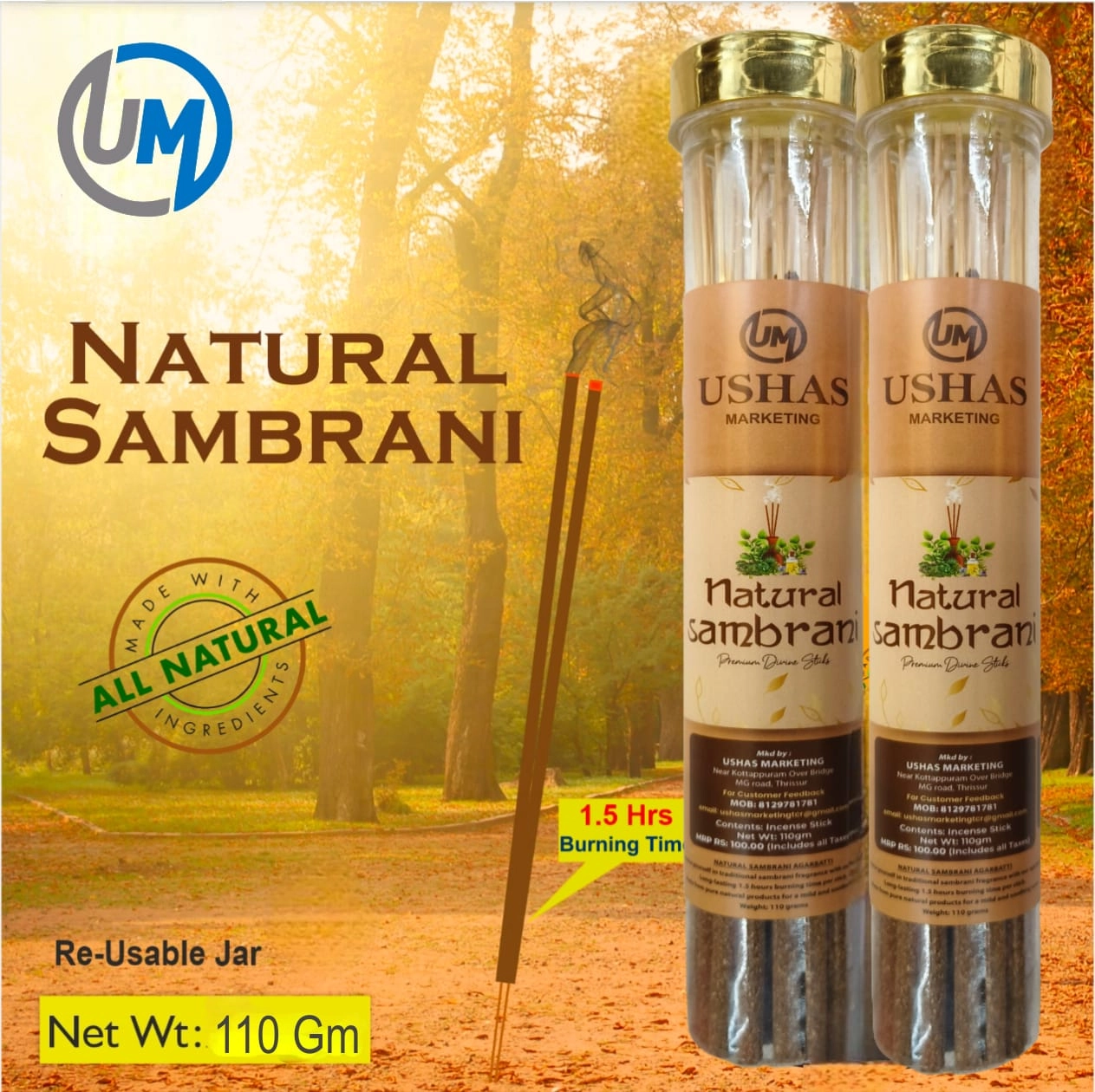 New CollectionNatural Sambrani Incense Sticks – Pure, Long-Lasting & Chemical-Free Elevate your spiritual rituals with our Natural Sambrani Sticks, crafted from pure natural ingredients to deliver the authentic, rich aroma of Sambrani. Designed for those who seek purity, these sticks are made with Gum Benzoin, natural resins, and wood powders, ensuring a soothing, cleansing, and long-lasting fragrance that purifies your surroundings. Why Choose Our Natural Sambrani Sticks? ✔️ Looks Like Agarbathi, Smells Like Pure Sambrani – Enjoy the convenience of incense sticks with the authentic, temple-like fragrance of Sambrani. ✔️ Long-Lasting Burn Time – Each stick burns for a minimum of 1.5 hours, providing an extended aromatic experience. ✔️ More Natural Smoke, No Eye Irritation – Made from pure natural ingredients, ensuring a pleasant experience without discomfort. ✔️ Air-Purifying & Cleansing Properties – Infused with gum benzoin, resins, and wood powders to purify and energize your space. ✔️ No Chemicals Added – A 100% natural, safe, and eco-friendly incense for your home and spiritual practices. ✨ Experience the Divine Purity of Natural Sambrani! ✨ Perfect for pooja, meditation, relaxation, and traditional rituals, our Sambrani sticks bring peace, positivity, and purity to your environment. 🔹 Product Details: ✔️Net Weight: 110g ✔️ Burn Time: Minimum 1.5 hours per stick ✔️ Ingredients: Pure Gum Benzoin, Natural Resins, Wood Powders – No Chemicals Added ✔️ Packaging: Securely packed in a reusable jar for freshness & convenience ✅ Order Now & Experience the Purity of Natural Sambrani Incense!
