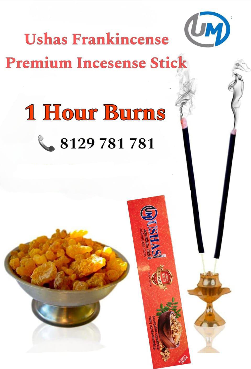 (10 Incense Sticks Burn for 1 Hour in Each Pack)- Frankincense is wonderful for cleansing, whether you want to cleanse a room or cleanse your aura. Incense is the simplest, purest, and most economical way to scent your living space. Incense is extensively described in ancient Sanskrit texts and is considered a means of appeasing the gods. Burn Time: 1 Hour This exotic scent provides the key to harnessing the benefits of aromatherapy and creating a refreshing or uplifting mood or environmental effect. The use of incense increases longevity, harmonizes the psychophysical constitution, and increases mental focus. It is better than aerosol air fresheners.